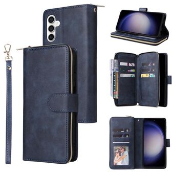 For Samsung Galaxy S23 FE 5G 9-Card Slots Zipper Wallet Bag Leather Phone Case(Blue)