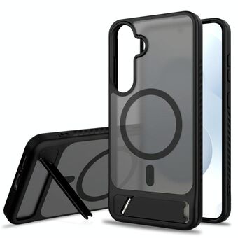 For Samsung Galaxy S24+ 5G Frosted Holder PC Hybrid TPU MagSafe Phone Case(Black)