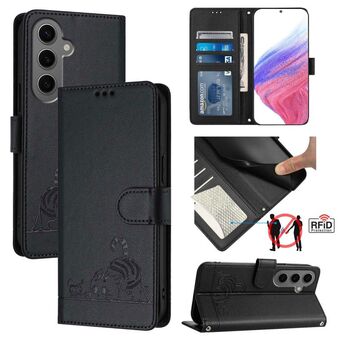 For Samsung Galax S24+ 5G Cat Rat Embossed Pattern RFID PU Phone Case with Wrist Strap(Black)