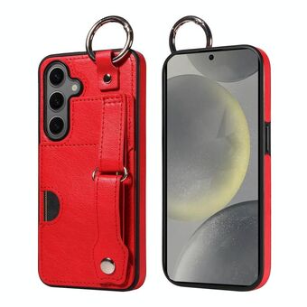 For Samsung Galaxy S24+ 5G Calf Texture Wrist Card Slot Ring Phone Case(Red)