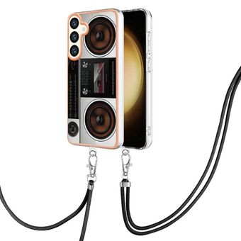 For Samsung Galaxy S24+ 5G Electroplating Dual-side IMD Phone Case with Lanyard(Retro Radio)