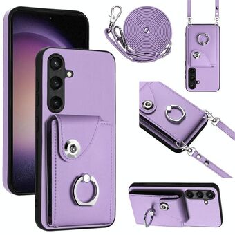 For Samsung Galaxy S24+ 5G Organ Card Bag Ring Holder Phone Case with Long Lanyard(Purple)