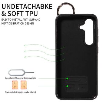 For Samsung Galaxy S24+ 5G Calf Texture Wrist Card Slot Ring Phone Case(Black)