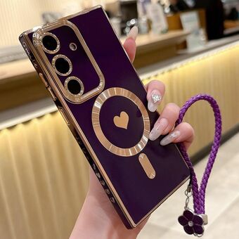For Samsung Galaxy S24+ 5G Pupil Side Heart MagSafe Electroplating Phone Case with Lanyard(Dark Purple)