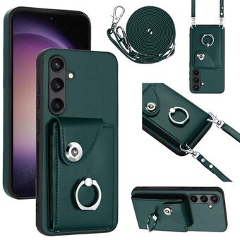 For Samsung Galaxy S24+ 5G Organ Card Bag Ring Holder Phone Case with Long Lanyard(Green)