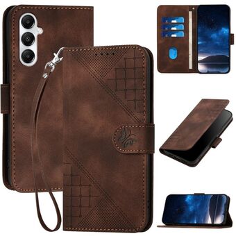 For Samsung Galaxy S24 FE 5G YX0080 Grid Butterfly Embossed Pattern Flip Leather Phone Case with Lanyard(Coffee)