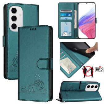 For Samsung Galaxy S24 FE 5G Cute Cats RFID Leather Phone Case(Green)