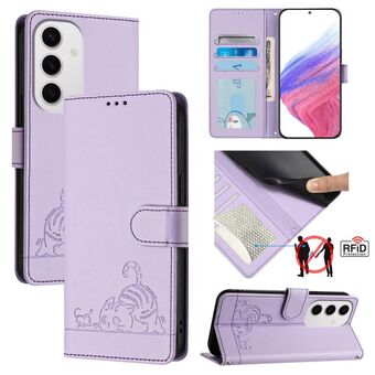 For Samsung Galaxy S24 FE 5G Cute Cat Embossed Leather Phone Case(Purple)