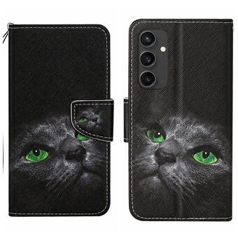 For Samsung Galaxy S24 FE 5G 3D Colored Drawing Flip Leather Phone Case(Black Cat)