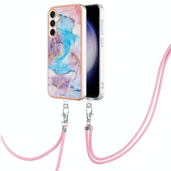 For Samsung Galaxy S24 FE 5G Electroplating Pattern IMD TPU Shockproof Case with Neck Lanyard(Milky Way Blue Marble)