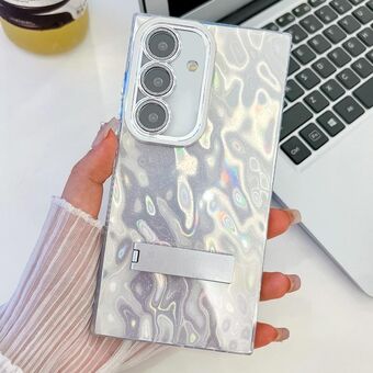For Samsung Galaxy S24 FE 5G Plating Glitter Texture Fold Holder TPU Phone Case with Lens Film(Pink Water Ripples)