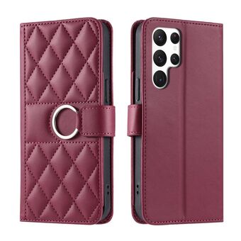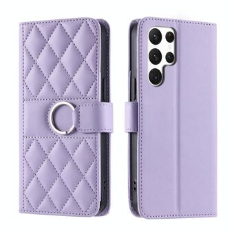 For Samsung Galaxy S24 Ultra 5G Ring Buckle Rhombic Leather Phone Case(Purple)