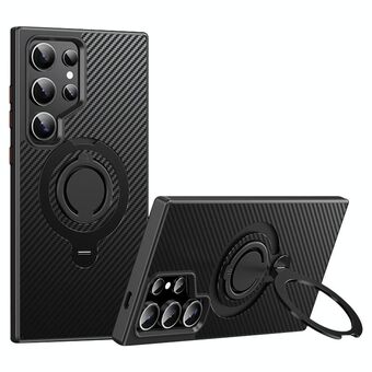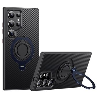 For Samsung Galaxy S24 Ultra 5G Carbon Fiber MagSafe Phone Case with 360 Degree Rotating Holder(Black)