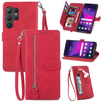 For Samsung Galaxy S24 Ultra 5G Embossed Flower Zipper Leather Phone Case(Red)