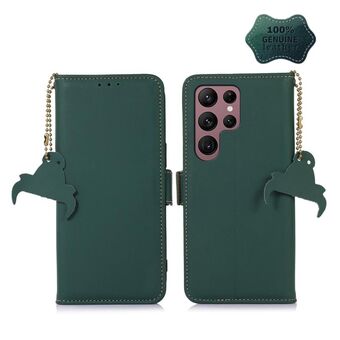 For Samsung Galaxy S24 Ultra 5G Genuine Leather Magnetic RFID Leather Phone Case(Green)