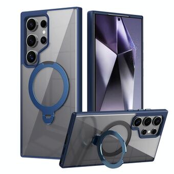 For Samsung Galaxy S24 Ultra 5G Transparent MagSafe Magnetic Rotating Ring Holder Phone Case(Blue)