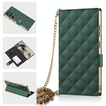 For Samsung Galaxy S24 Ultra 5G GKK Plating Diamond Texture Leather Phone Case With Crossbody Chain(Emerald) (GKK)