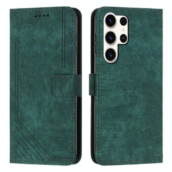 For Samsung Galaxy S24 Ultra Skin Feel Stripe Pattern Leather Phone Case with Long Lanyard(Green)