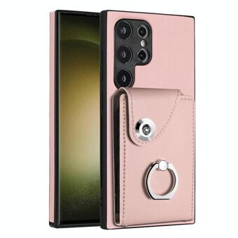 For Samsung Galaxy S24 Ultra 5G Organ Card Bag Ring Holder PU Phone Case(Pink)