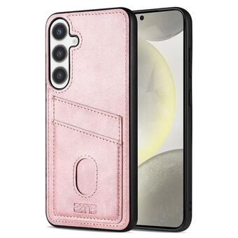 For Samsung Galaxy S24 5G Plating Glitter Texture Fold Holder TPU Phone Case with Lens Film(Pink Wrinkles)