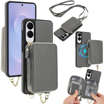 For Samsung Galaxy S25 Edge 5G AwQuer 2 in 1 Crossbody Zipper Wallet Leather Back Phone Case(Grey) (Awquer)