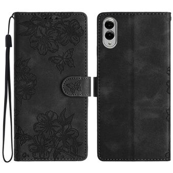 For Samsung Galaxy S25 Edge 5G Cherry Blossom Butterfly Skin Feel Embossed PU Phone Case(Black)