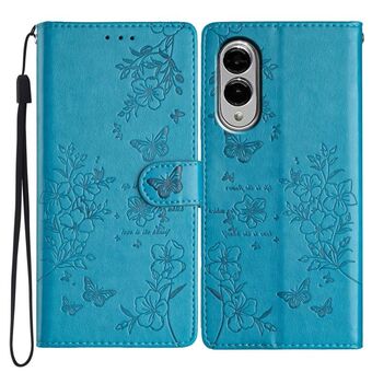 For Samsung Galaxy S25 Edge 5G Butterflies and Flowers Leather Phone Case(Blue)