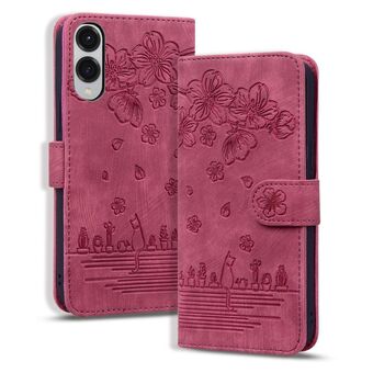 For Samsung Galaxy S25 Edge 5G Cherry Blossom Butterfly Skin Feel Embossed PU Phone Case(Brown)