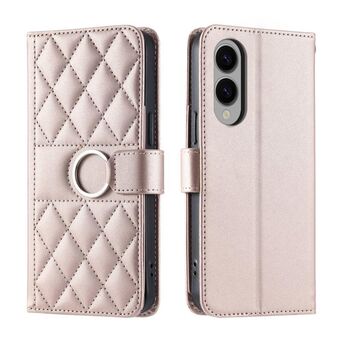 For Samsung Galaxy S25 Edge 5G Stitching Calf Texture Buckle Leather Phone Case(Rose Gold)