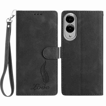 For Samsung Galaxy S25 Edge 5G Skin Feel Embossed Feather Leather Phone Case(Black)