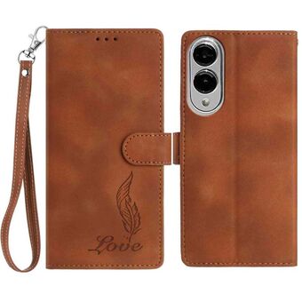 For Samsung Galaxy S25 Edge 5G Skin Feel Embossed Feather Leather Phone Case(Brown)