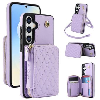 For Samsung Galaxy S25 FE 5G AwQuer Crossbody Zipper Wallet Rhombic Leather Back Phone Case(Purple) (Awquer)