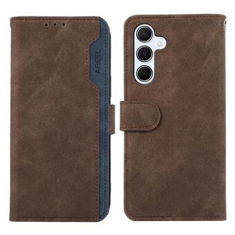 For Samsung Galaxy S25 FE 5G ABEEL Color Block Magnetic RFID Leather Phone Case(Brown-Blue)