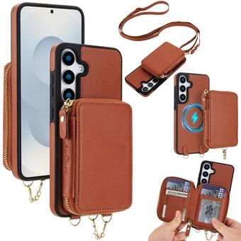 For Samsung Galaxy S25 FE 5G AwQuer 2 in 1 Crossbody Zipper Wallet Leather Back Phone Case(Brown) (Awquer)