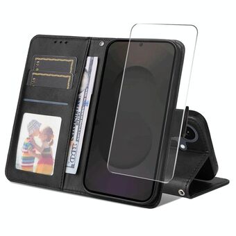 For Samsung Galaxy S25 FE 5G ENKAY Card Wallet Calf Texture Leather Phone Case with Screen Film(Black) (ENKAY)