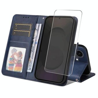 For Samsung Galaxy S25 FE 5G ENKAY Card Wallet Calf Texture Leather Phone Case with Screen Film(Blue) (ENKAY)