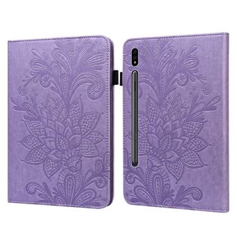 For Samsung Galaxy Tab S8 / Galaxy Tab S7 SM-T870/SM-T875/SM-T876B Lace Flower Embossing Pattern Horizontal Flip Leather Case with Holder & Card Slots & Wallet & Photo Frame(Purple)