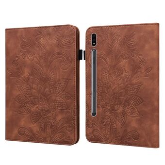 For Samsung Galaxy Tab S8 / Galaxy Tab S7 SM-T870/SM-T875/SM-T876B Lace Flower Embossing Pattern Horizontal Flip Leather Case with Holder & Card Slots & Wallet & Photo Frame(Brown)