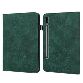 For Samsung Galaxy Tab S8 / Galaxy Tab S7 SM-T870/SM-T875/SM-T876B Lace Flower Embossing Pattern Horizontal Flip Leather Case with Holder & Card Slots & Wallet & Photo Frame(Green)