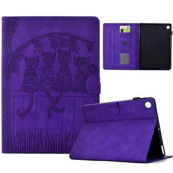 For Samsung Galaxy Tab A9 Cats Embossed Leather Tablet Case(Purple)