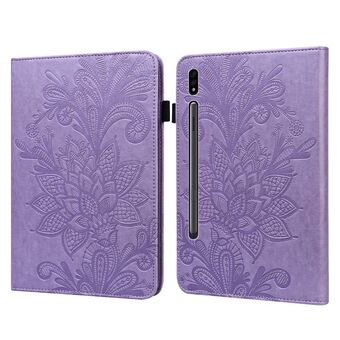 For Samsung Galaxy Tab S9 Lace Flower Embossing Pattern Leather Tablet Case(Purple)