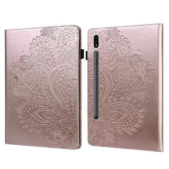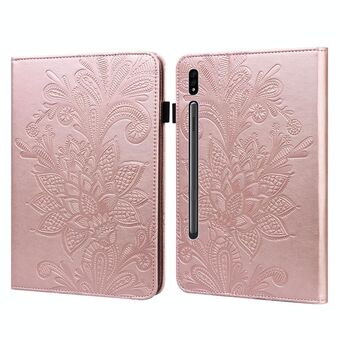 For Samsung Galaxy Tab S9 Lace Flower Embossing Pattern Leather Tablet Case(Gold)