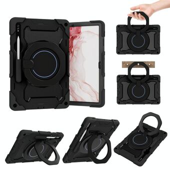 For Samsung Galaxy Tab S9+ Armor Portable Rotating Ring Holder Silicone Tablet Case(Black)