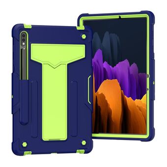 For Samsung Galaxy Tab S9 FE / S9 T Holder Robot Silicone Hybrid PC Tablet Case(Navy Yellow Green)
