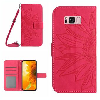 For Samsung Galaxy S8+ Skin Feel Sun Flower Pattern Flip Leather Phone Case with Lanyard(Rose Red)