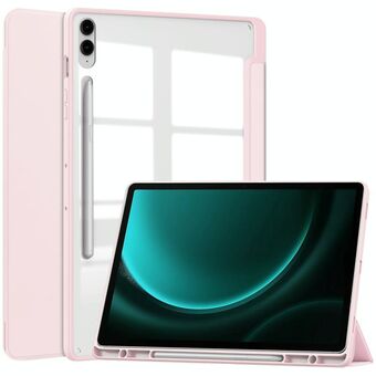 For Samsung Galaxy Tab S9 FE+ / S10+ Acrylic 3-folding Smart Leather Tablet Case with Pen Slot(Pink)