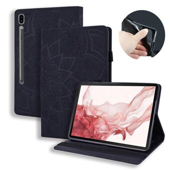For Samsung Galaxy Tab S10 Ultra / S9 Ultra Tree Life Embossed Rotation Leather Tablet Case(Black)