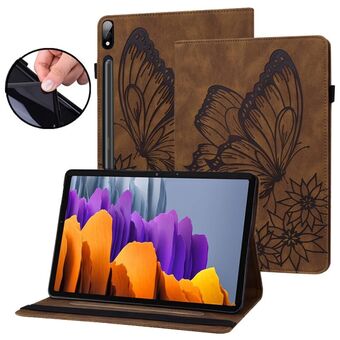 For Samsung Galaxy Tab S9 Ultra / S8 Ultra Big Butterfly Embossed Leather Tablet Case(Brown)