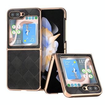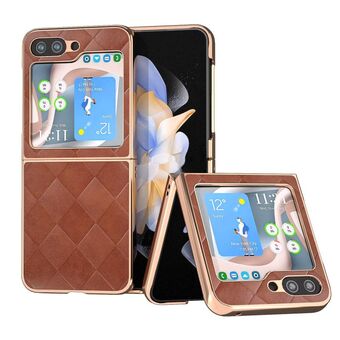 For Samsung Galaxy Z Flip5 5G Electroplated Back Screen Integrated Litchi Texture Phone Case(Brown)