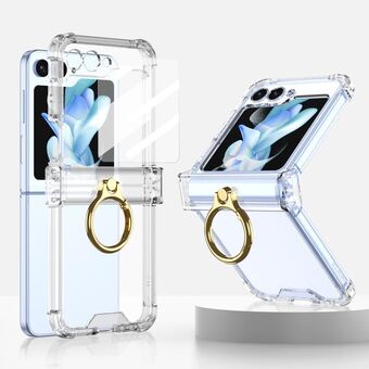 For Samsung Galaxy Z Flip5 Gkk Airbag Hinge Silicone Phone Case with Ring Holder & Tempered Film(Transparent) (GKK)